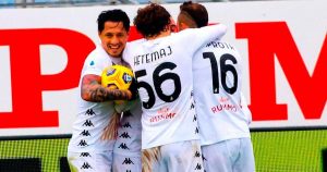Con la presencia del delantero ítalo-peruano Gianluca Lapadula hasta los 76 minutos de juego, Benevento consiguió un triunfo fuera de casa al derrotar 2-1 al