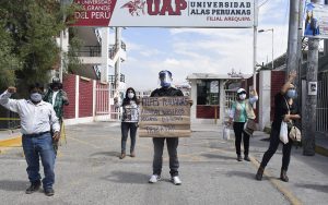Un grupo de egresados de la Universidad Alas Peruanas se dio cita este 14 de enero en el frontis de dicha casa de estudios para