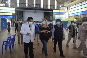Estrategias. La presidente de Essalud, Fiorella Molinelli, estuvo presente hoy en la inauguración del primer Centro de Vacunación Peatonal de Arequipa. Este se encuentra en