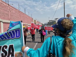 Personal de salud hizo un plantón a las afuera del Hospital Essalud Carlos Alberto Seguin Escobedo y exigió la entrega del Hospital Edmundo Escomel. Enrique