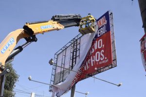 Retirados. Esta mañana, trabajadores de la Municipalidad Distrital de Mariano Melgar retiraron paneles en contra del comunismo de la avenida Mariscal Castilla. En total suman