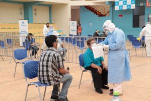 En el Distrito de Mariano Melgar se aperturó cuatro puntos de vacunación en el Coliseo Municipal del Niño, en la Institución Educativa Madre del Divino