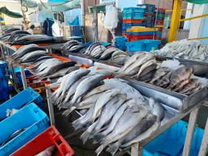 Productos. Estos días debido al clima y la alta marea, varios productos hidrobiológicos que se expenden en el mercado El Palomar y en el Río