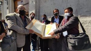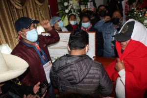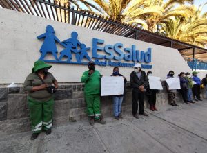 Obreros municipales de Paucarpata protestaron en el frontis del Hospital Nacional Carlos Alberto Seguin Escobedo EsSalud, porque uno de sus compañeros, contagiado con COVID-19, recibió