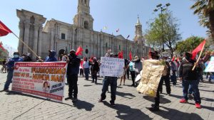 A través de una manifestación, decenas de ciudadanos se acercaron a la plaza de Armas de Arequipa para protestar y rechazar la presencia de Lourdes