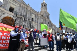 La Federación Departamental de Trabajadores de Arequipa realizó una manifestación por el centro de Arequipa pidiendo la rebaja del combustible y, a su vez, el