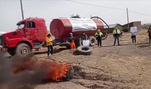 Protesta. Proveedores y trabajadores del consorcio ALVAC-ARAMSA en el distrito de Mañazo, provincia de Puno, ya cumplen tres días de protesta por el incumplimiento de
