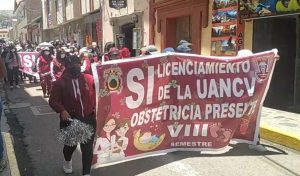 Un grupo de estudiantes y docentes de la Universidad Andina Néstor Cáceres Velásquez (UANCV) realizaron hoy una protesta en Puno para exigirle a la Superintendencia