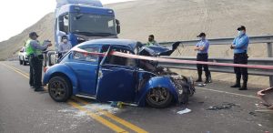 El impacto entre el auto escarabajo V9E-007 y un semitrailer en el Km. 19 de la carretera Camaná – Quilca dejó como saldo una persona