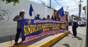 Esta mañana un grupo de profesores del Sindicato Magisterial Regional de Arequipa (Simag), realizaron plantón en las afueras de la sede del Gobierno Regional de