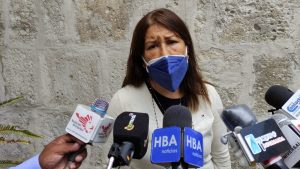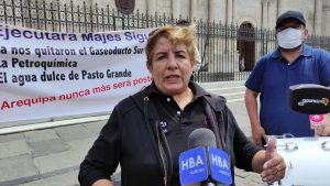 La excongresista por Arequipa, Rosario Paredes, protestó en el frontis de la Catedral, con el motivo de la no aprobación de la Adenda 13 del