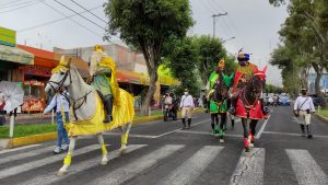 Melchor, Gaspar y Baltasar, los tres reyes magos, recorren la ciudad de Arequipa y regalan dulces a los niños que están por el recorrido de
