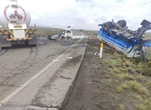 Dos unidades de carga pesada colisionaron en la carretera Arequipa-Puno, a la altura del kilómetro 163, cerca del poblado de Imata, región Arequipa. Según la