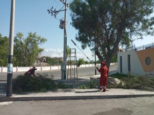 Hoy la comuna provincial de Arequipa, inicio los trabajos de mantenimiento en el área verde del colegio Juan Cervantes en el Cercado de Arequipa, para