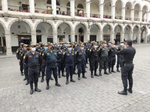 Esta mañana un resguardo policial empezó a instalarse en los alrededores de la Plaza de Armas de Arequipa. Está situación inusual se debe a las