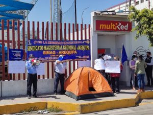 Esta mañana un grupo de docentes del Sindicato Magisterial de docentes de Arequipa (Simag Arequipa), exigen que el Gobierno Regional de Arequipa cumplan con varios