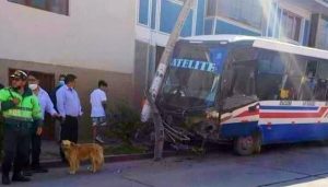 Ayer en horas de la tarde, un bus de transporte público colisionado contra dos vehículos y contra un aposte de alumbrado público en Cusco. El