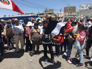 Un grupo de manifestantes han bloqueado la vía Arequipa-Puno en el Cono Norte, para volver a exigir la renuncia de la presidenta Dina Boluarte. El