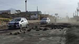 El bloqueo de vías continúa en varios puntos de Arequipa. Uno de los carriles de salida de Arequipa en variante de Uchumayo fue bloqueado de