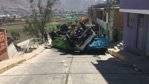 Esta mañana se reportó un accidente en el distrito de Tiabaya. Una cisterna de agua, que pertenece al municipio, se volcó y terminó chocando contra