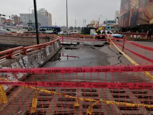 Las fuertes lluvias están generando serios estragos en la ciudad de Arequipa. Ayer en la noche, se reportó un gran hundimiento en el cruce entre
