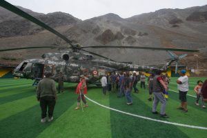 El gobernador de Arequipa, Rohel Sánchez, llegó hasta Secocha en un helicóptero, para llevar la primera ayuda humanitaria a la zona. Los huaicos dejaron pérdidas