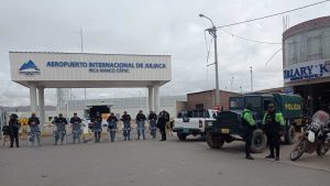 Personal de la Policía Nacional se encuentra resguardando el Aeropuerto Internacional Inca Manco Cápac de Juliaca. Esto luego de que, el jueves 9 de febrero,