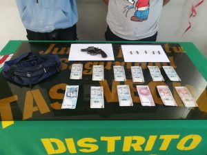 Agentes de la Policía Nacional del Perú, detuvieron a dos sujetos acusados de robar S/1050 de un agente con un arma de fuego, en el