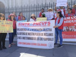 La mañana de este miércoles 21 de junio, los trabajadores de los Centros de Emergencia Mujer de Arequipa realizaron una marcha por el Centro Histórico
