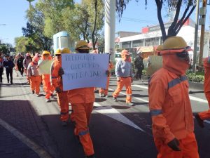 La mañana de este miércoles 2 de agosto, los obreros de construcción civil de la obra Bicentenario, realizaron una marcha hasta la empresa de telefonía