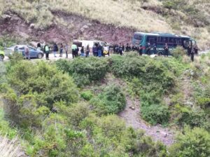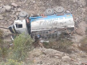La cisterna había cedido el paso a un volquete, pero el terreno cedió y la cisterna terminó cayendo aproximadamente 60 metros.