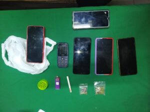 Entre las pertenencias de los acusados se encontró hasta 6 celulares y sustancias ilícitas.