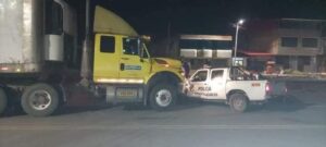 Los policías que se encontraban al interior de la unidad huyeron del lugar luego de impactar contra un camión, en el Terminal Terrestre de Urcos.