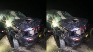 El motociclista perdió la vida tras el fuerte impacto que dejó la unidad menor totalmente calcinada, el conductor de la camioneta también resultó herido.