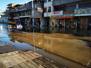 Tubería rota inundó mercado y calles en Socabaya