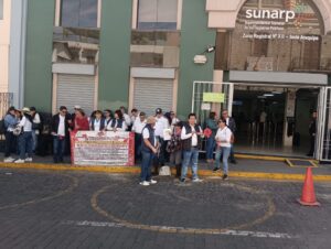 Trabajadores de los registros públicos en trece zonas registrales del país se manifiestan por mejoras salariales y condiciones laborales.