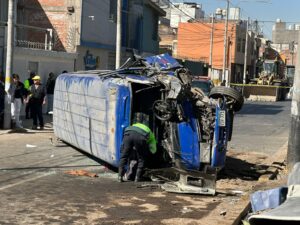Como se sabe, el choque y despiste de la unidad dejó a una cobradora fallecida y 27 pasajeros heridos. El accidente ocurrió esta mañana en la Av. Perú, a pocos metros del óvalo de La Apacheta, en el distrito de José Luis Bustamante y Rivero.
