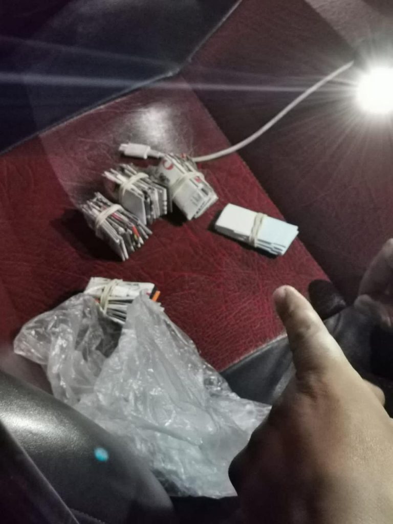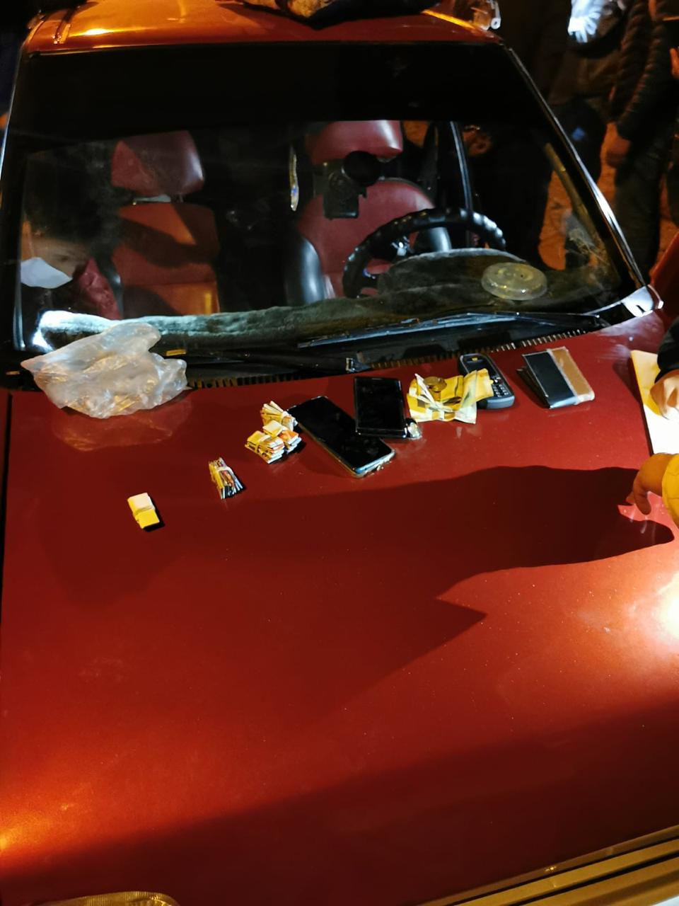 Con la presencia del fiscal Efraín Sumir García se inició la revisión del vehículo, hallándose en el piso una bolsa de plástico que tenía en su interior 3 paquetes tipo paco. Cada paquete contenía diez envoltorios de PBC. Además de otros paquetes con clorhidrato de cocaína.