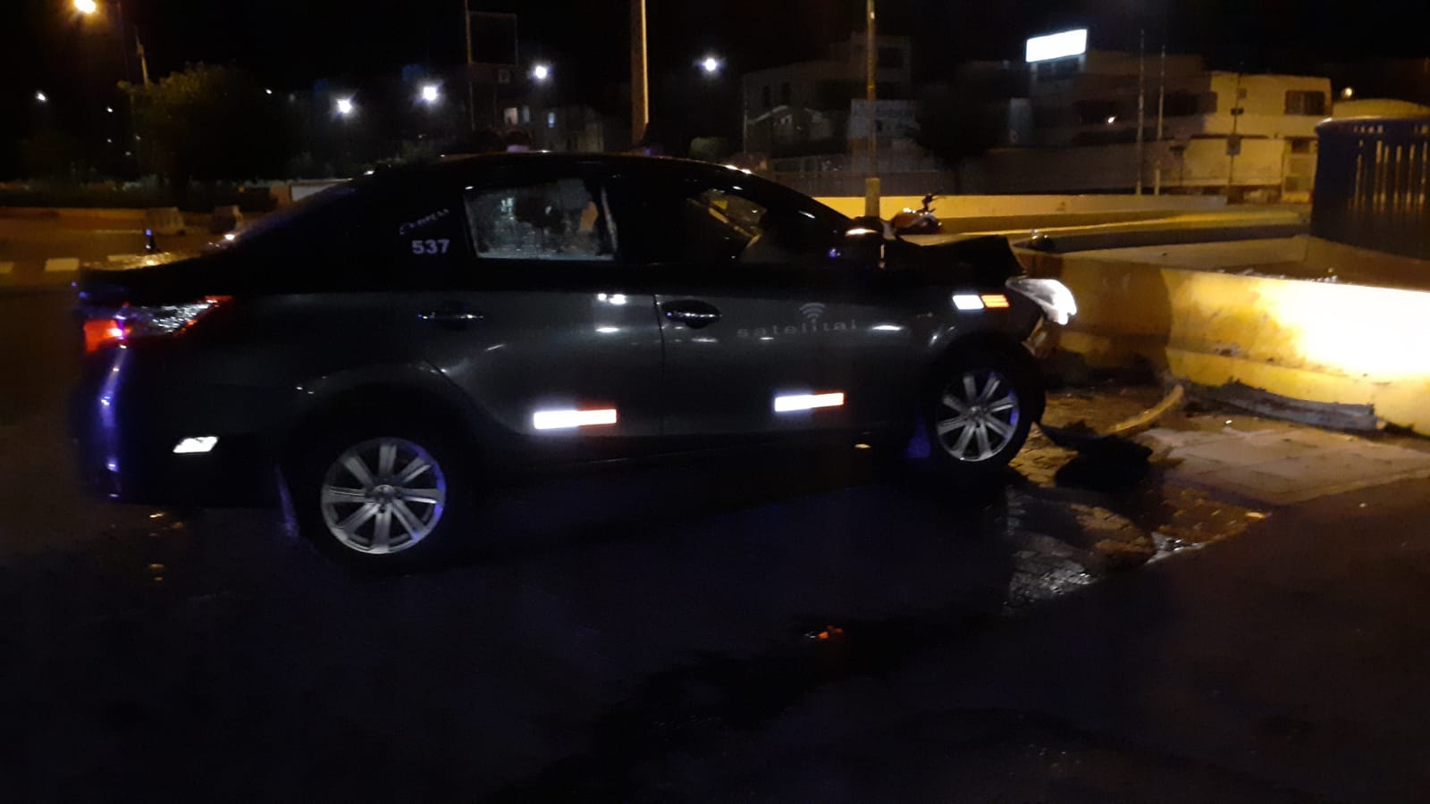Ayer domingo, al promediar las 22.55 horas, el conductor del vehículo V8C-455 de la empresa Megasur chocó su vehículo contra el muro del puente Roberts Valcárcel, en el cercado de Arequipa.