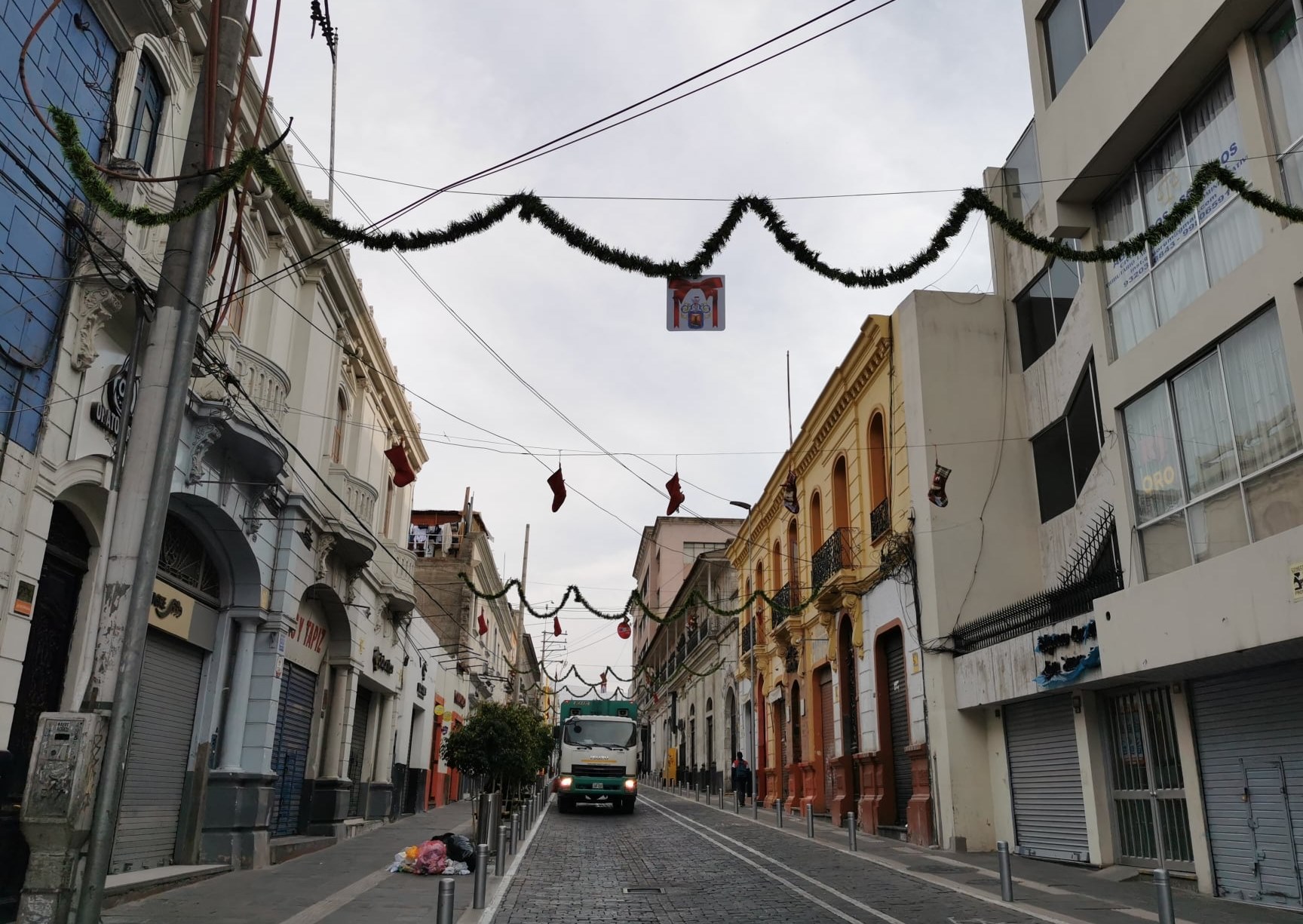 Esta mañana, personal de la sub gerencia de desarrollo económico local de la municipalidad de Arequipa, colocaron guirnaldas y demás adornos navideños, como parte de las fiestas de fin de año.