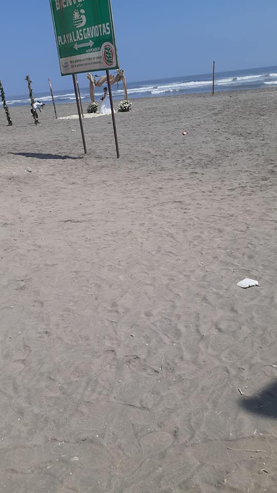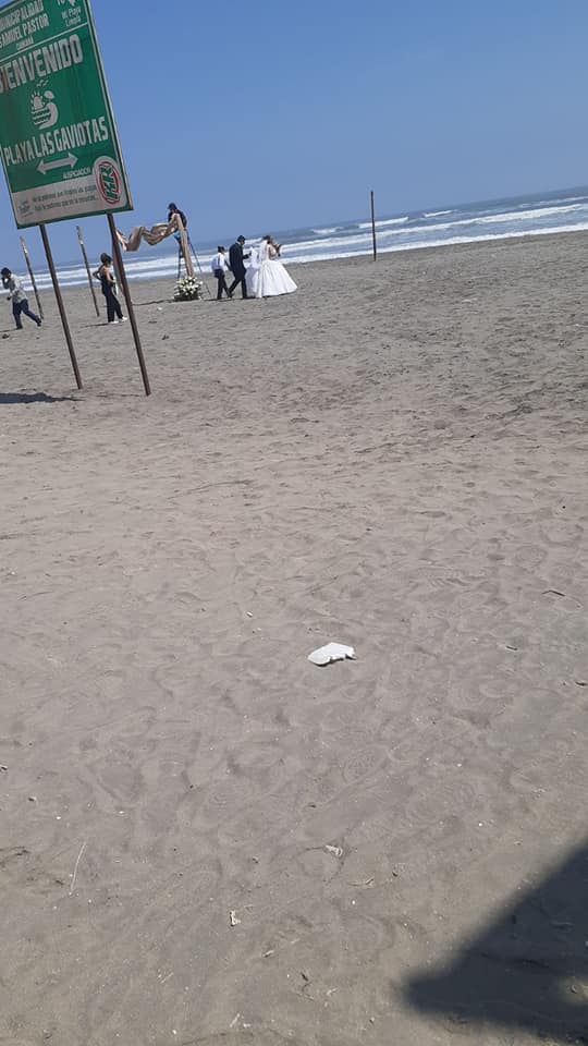 Este sábado, pese a la existencia de personal policial, se desarrolló una boda en la playa Las Gaviotas que generó una reunión de invitados, a lo que esta queja fue denunciada mediante las redes sociales, con las siguientes fotografías.