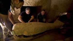 Arqueólogos egipcios han descubierto al menos 13 sarcófagos de madera de 2.500 años de antigüedad en la necrópolis del desierto de Saqqara, en Egipto. Lo