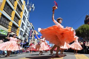 Este viernes, en La Paz, Bolivia, nuevamente se vio el color entre la música y disfraces en el desfile por el Día de La Paz