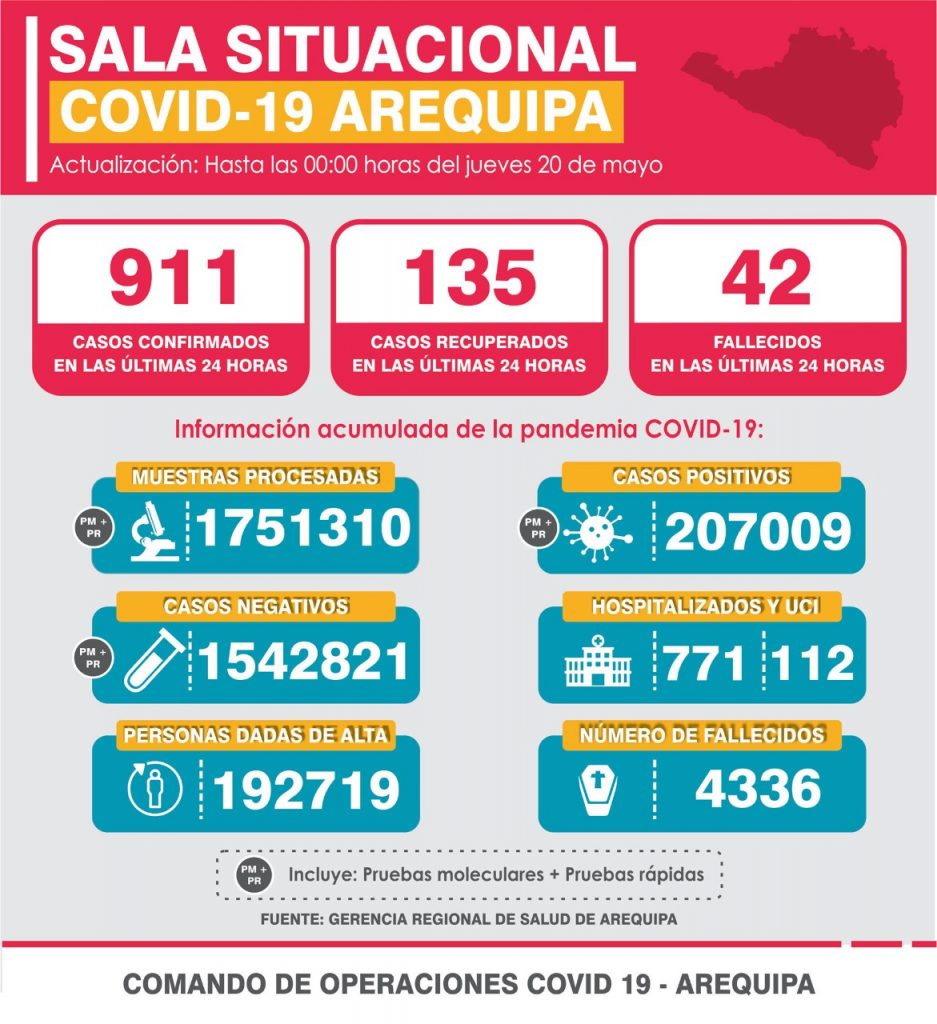 Hoy, 20 de mayo, el Comando de Operaciones COVID-19 Arequipa reportó la segunda cifra de fallecidos más alta por coronavirus desde 2020.