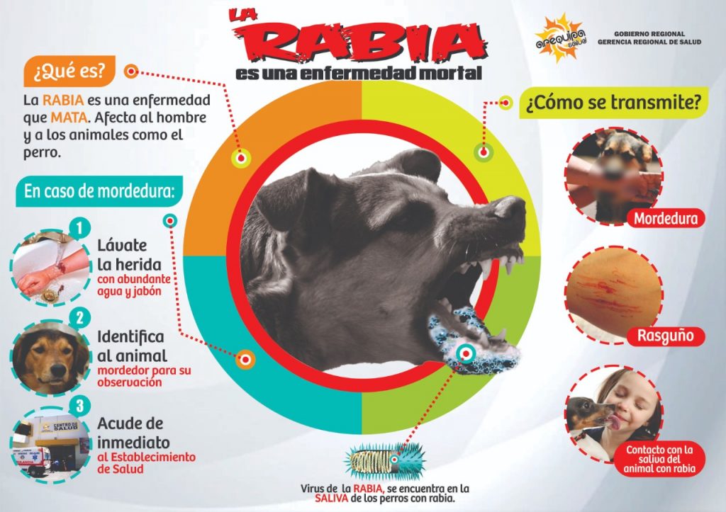 El caso de Cerro Colorado se dio en un can de 1 año y 6 meses, el cual puso en riesgo a 10 personas. Una gestante fue mordida por el animal rabioso, no obstante, la mujer ya recibió el suero respectivo.