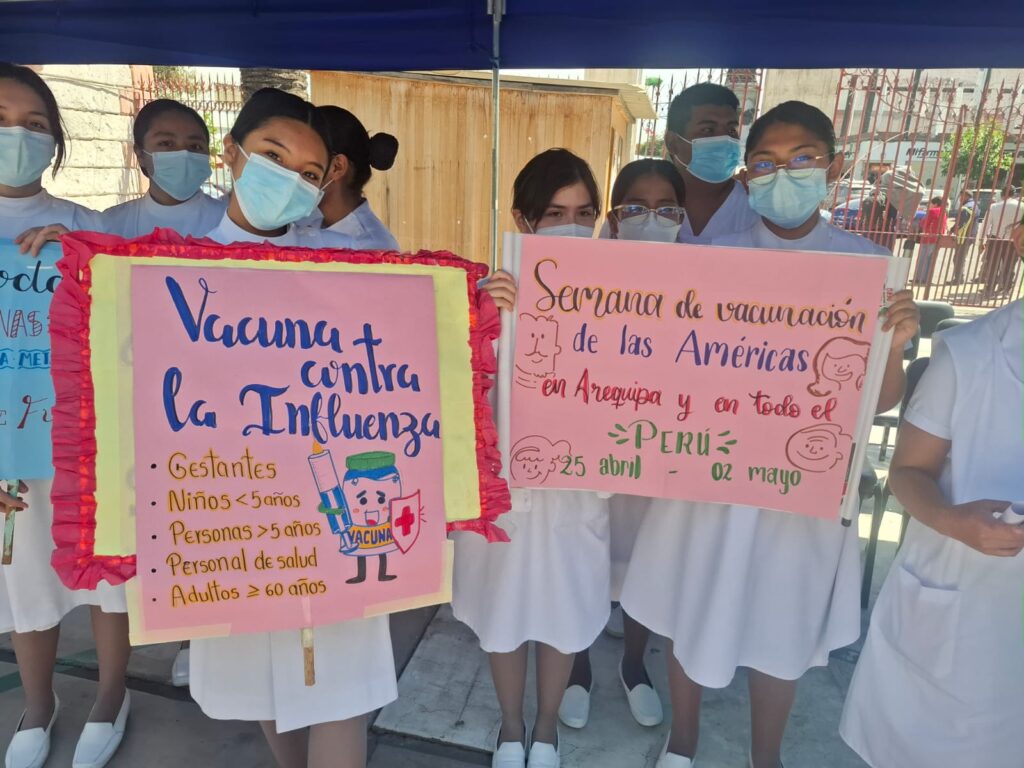 La coordinadora de inmunizaciones del Hospital Goyeneche, Mery Chancolla, señaló que esta actividad es a nivel mundial. Estudiantes de enfermería de la Universidad Nacional de San Agustin (UNSA) y de la Universidad Católica de Santa María (UCSM), estarán apoyando durante el desarrollo de la campaña.