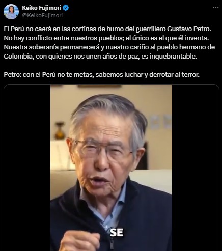A través de una publicación en la red social X, Fujimori dirigió un mensaje al mandatario colombiano y compartió un video en el que su padre, el fallecido expresidente Alberto Fujimori, se refería a Petro.