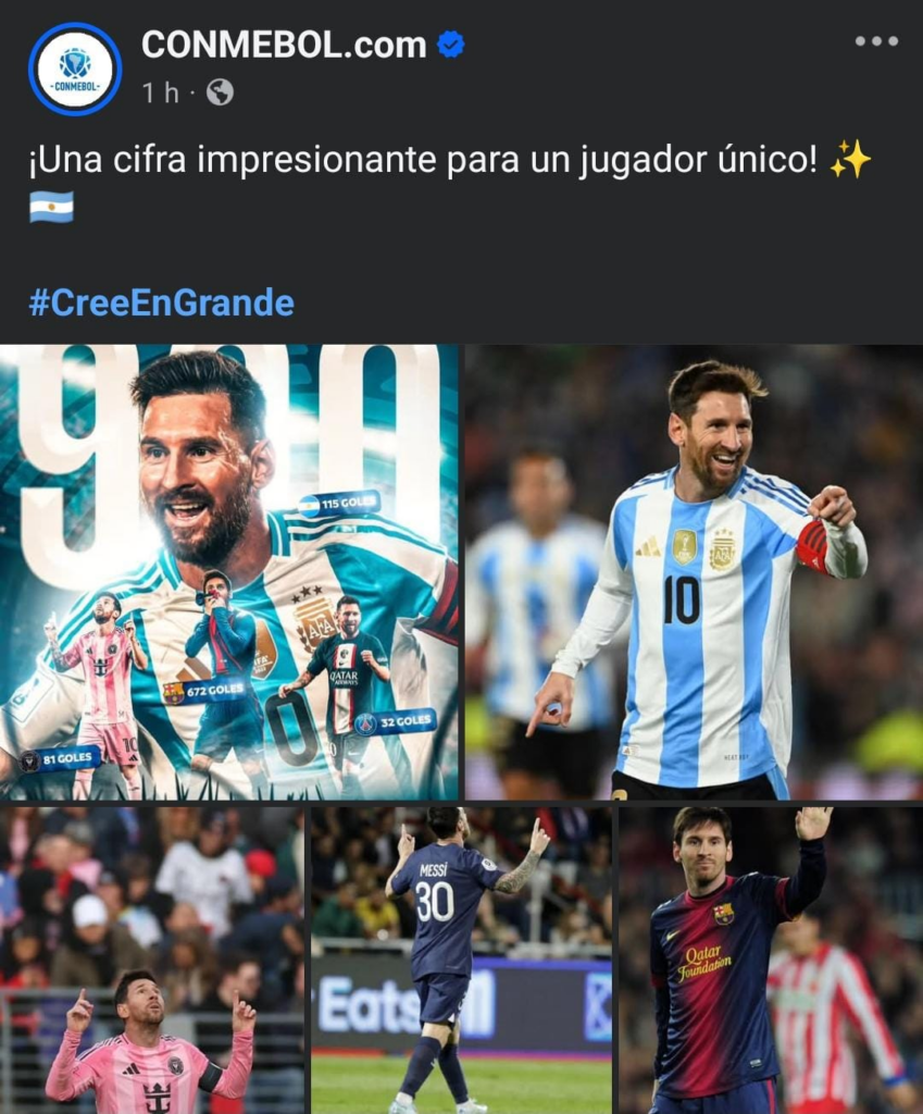 Por su parte, la CONMEBOL resaltó: “¡Una cifra impresionante para un jugador único!”, mientras que la Asociación del Fútbol Argentino publicó: “900 goals. Say no more”.