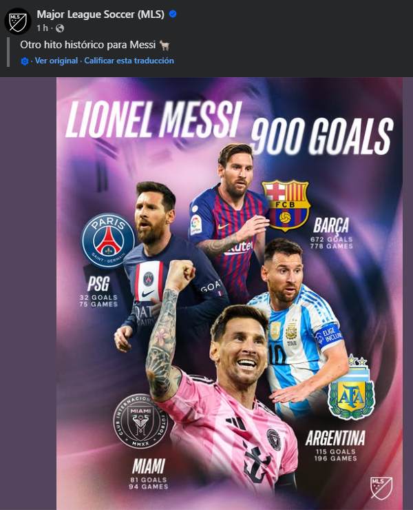 El logro de Messi generó una ola de reacciones en el mundo del fútbol. La Major League Soccer celebró el hito con el mensaje: “Novecientas veces eterno”, destacando la magnitud del registro alcanzado por el argentino.