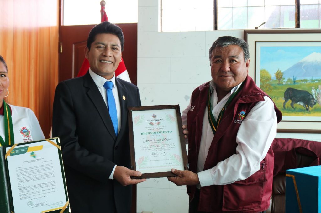 Asimismo, Javier Ponce realizó el reconocimiento a las autoridades locales por la gestión en favor de su población, y en un acto de reciprocidad, también fue reconocido y condecorado por su loable trabajo como presidente nacional de la REMURPE.